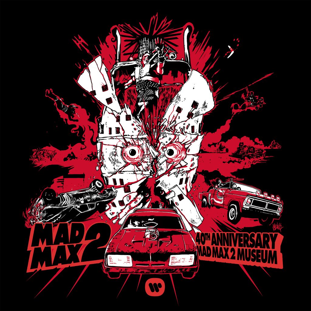 Visuel réalisé pour le quarantième anniversaire de MAD MAX 2. Il sera probablement disponible sous la forme d’un tshirt vendu au Musée Mad Max 2 de Silverton !