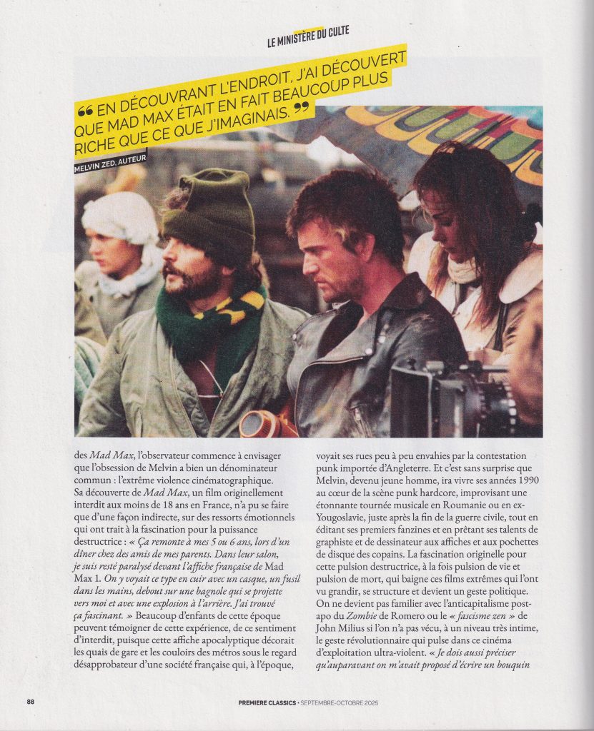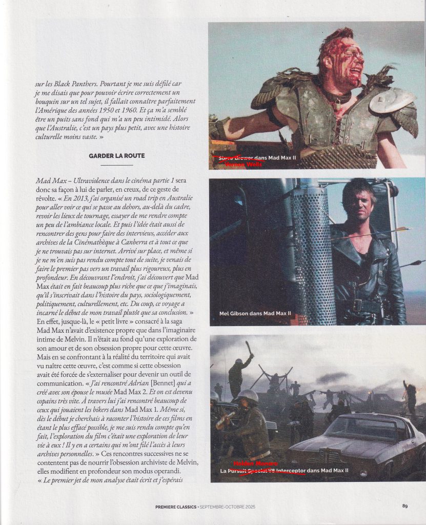 MAX OBSESSIONS – PREMIÈRE CLASSICS • melvinzed Related posts:EN ATTENDANT GODARD - INTW - 09 2025LE CINÉMA EST MORT – INTW – 09/2025L'ATTAQUE DU FOURGON BLINDÉARCHEOLOGIST OF THE WASTELANDMAD MAX 2 - LES GUERRIERS DE LA ROUTE